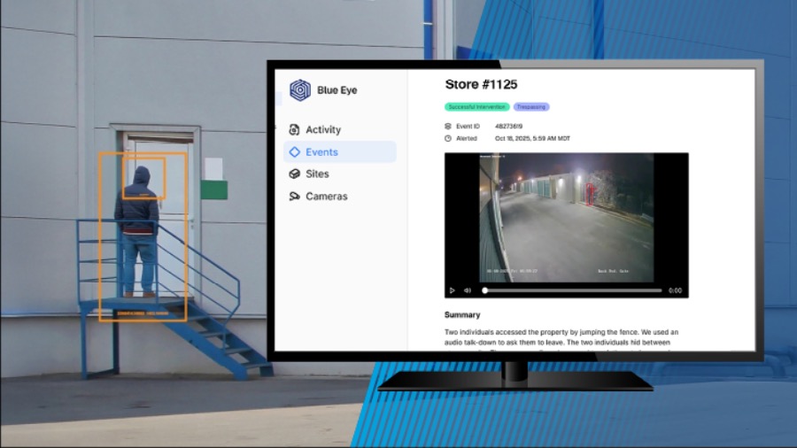Blue Eye provides a comprehensive RVM service powered by AI to help detect threats in real time, enabling live voice talk-downs to deter crime and providing verified alerts to help accelerate law enforcement response. The company’s software platform is interoperable with leading cameras and video management systems (VMS), allowing enterprises to integrate with existing security solutions.